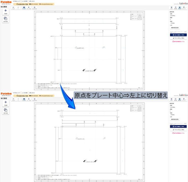 ※過去にお見積やご注文いただいた図面の再見積でも、ワンクリックで原点を切り替えてお見積できます。